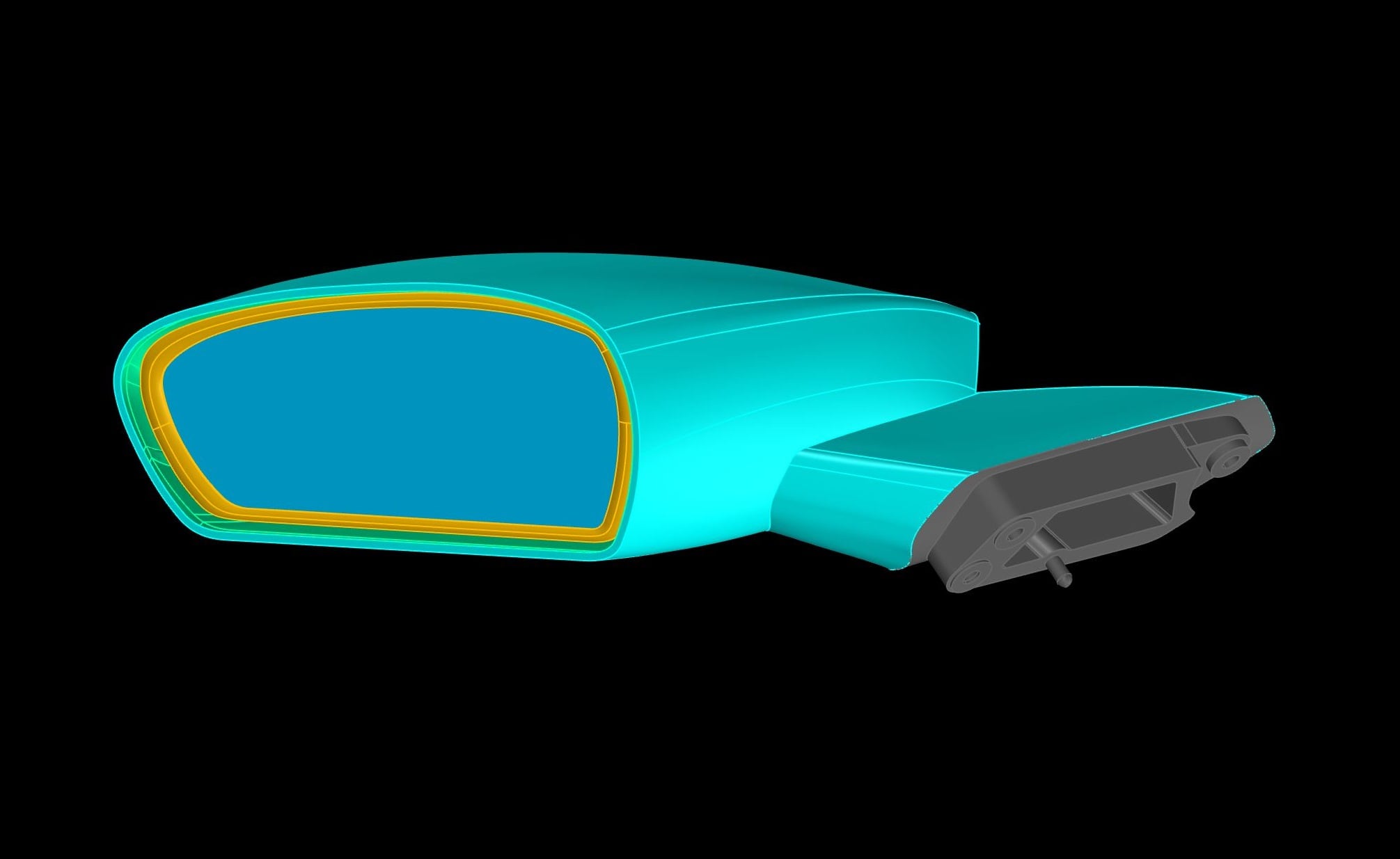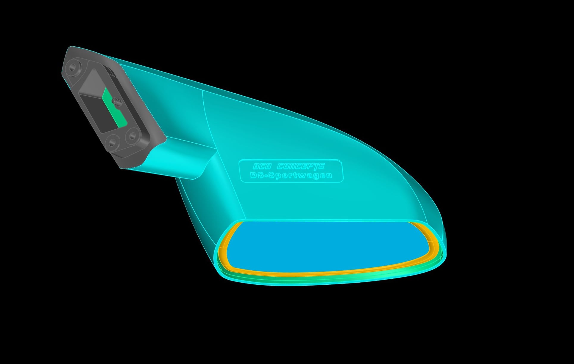 Wir haben für die Entwicklung ein eigenes 3D Design kreiert welches sich an den Schwung und Linienführung der Original Mustang Spiegel anlehnen sollte aber dennoch schnittiger, flacher und sportlicher wirken soll.