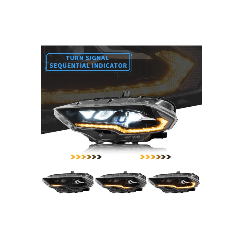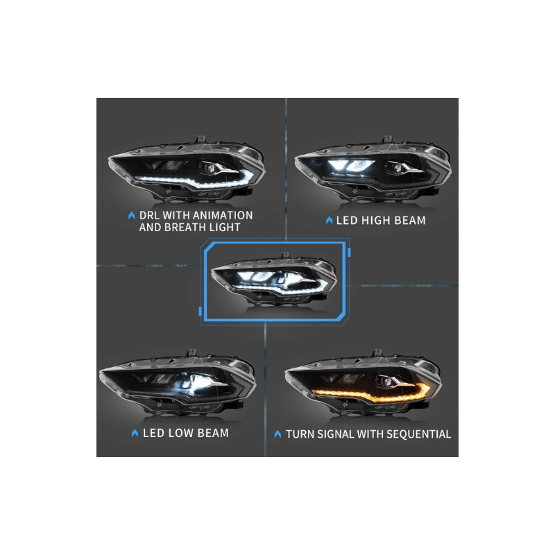 VOLL LED-Scheinwerfer mit dynamischem Blinker (alle Montagekits) für Ford Mustang 2018-2021 USA / EU (mit Adaptern)