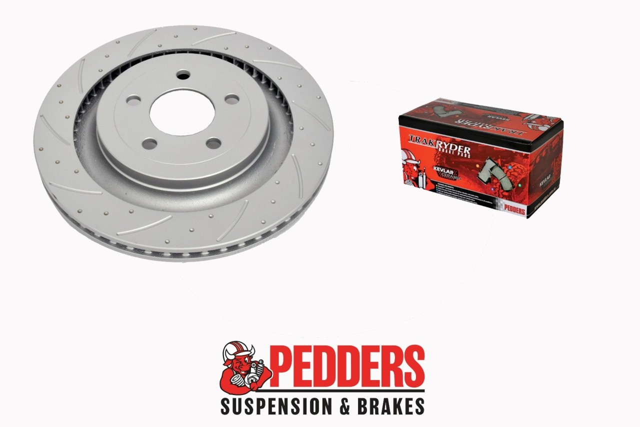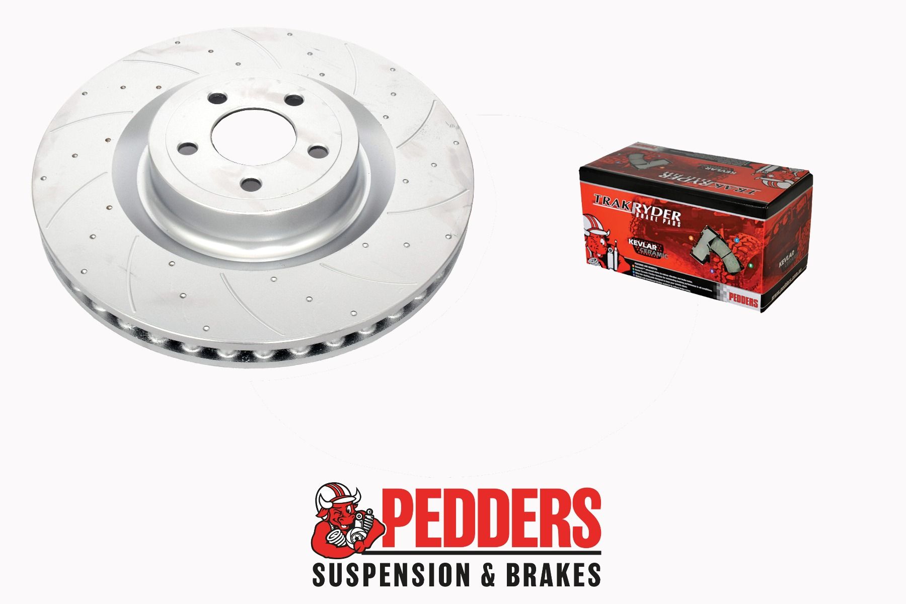 PEDDERS Komplettset mit 2 Scheiben 380mm Vorderachse (gebohrt und geschlitzt), sowie 2 Scheiben 330mm Hinterachse (ebenfalls gebohrt und geschitzt. (je nach Set)